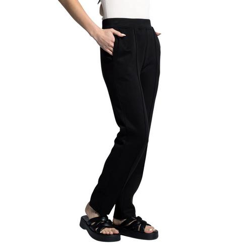 Sport yet chic enough to wear to the office, these pants are featured in a high waisted fit, dual side pockets and front seam detail with side slits.