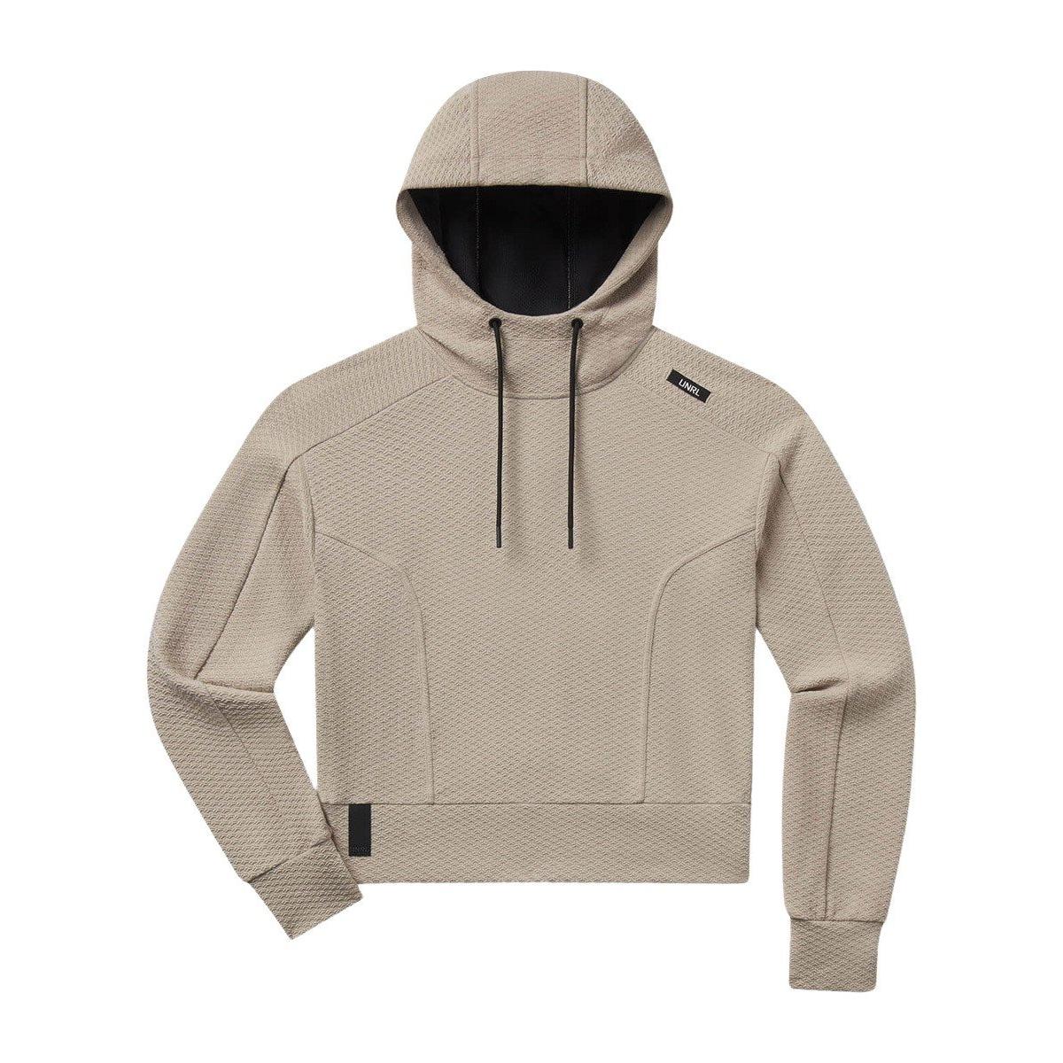 The Women's UNRL Elevation Hoodie combines style, comfort, and functionality for all-season wear. Crafted from custom-engineered textured knit fabric with four-way stretch, this midweight hoodie offers a fitted waist and elevated neckline for a flattering silhouette. Thumbholes, secure zippered hand pockets, and adjustable hood drawcords provide extra practicality, while the drop cut and overlap side hem enhance its modern design. Moisture-wicking and odor-control properties keep you fresh, while the custom-laced UNRL logo and wrinkle-release fabric ensure a sharp, polished look. Add the Women's UNRL Elevation Hoodie for an elevated casual look to your closet.