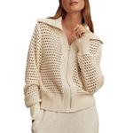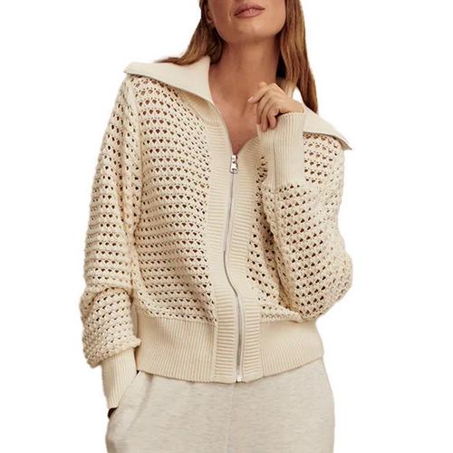 The Women's Varley Eloise Zip-Through Knit Jacket is your new staple piece. Crafted from a lightweight pointelle knit, this jacket features an oversized collar and a deep ribbed hem for effortless style. Whether you're dressing it up for a night out or keeping it casual for a weekend brunch, the Eloise is the perfect transitional layer to be worn throughout the year.