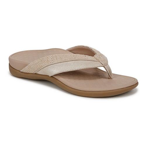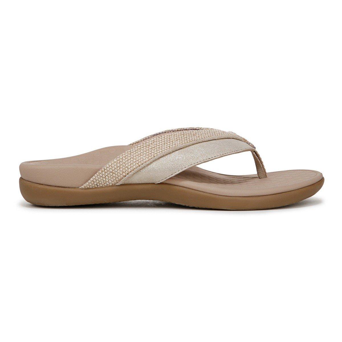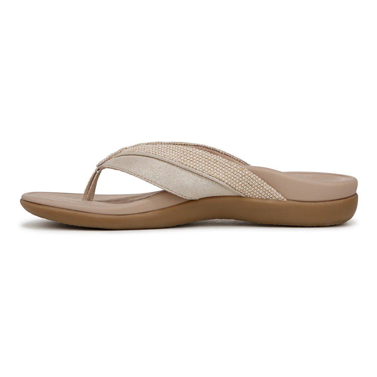 Boasting our most popular Tide sandal construction to date, the Shore Toe Post Sandal features detailed supple leather straps plus our coveted VioMotion Technology to keep you moving all day in balance. Premium upper materials. Designed with leather trim. Patterned tread provides traction across a range of surfaces. Lightweight, flexible EVA midsole absorbs shock, reducing stress on feet, ankles, and knees. Durable TPR outsole with patterned tread helps improve traction. Built-in VIO MOTION Technology footbed featuring contoured arch support, with shock-absorbing cushioning, deep heel cup to provide stability, and forefoot flexibility. Vionic Tide built-in orthotic is proven to treat heel pain caused by plantar fasciitis or Achilles tendonitis. For optimal comfort, wear your new Vionic shoes for a few hours to let your feet adapt. Within 1-2 weeks, you should experience full orthotic comfort and support. Received (APMA) American Podiatric Medical Association Seal of Acceptance. 0.625 inch(es) heel height. Imported.