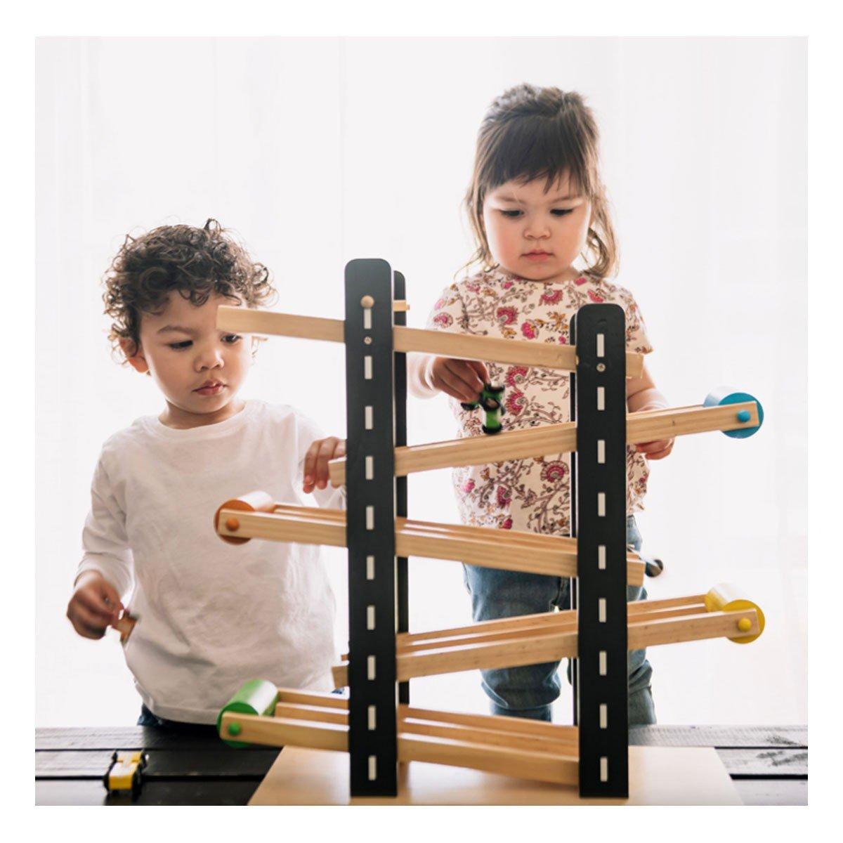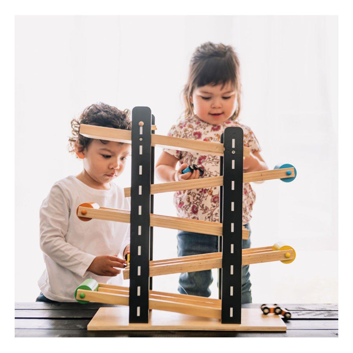 They’ll be off to the races with our Fast Track. Brightly painted with non-toxic paint and 5 natural wood slopes let the races begin. Includes 4 race cars for independent play or with friends.