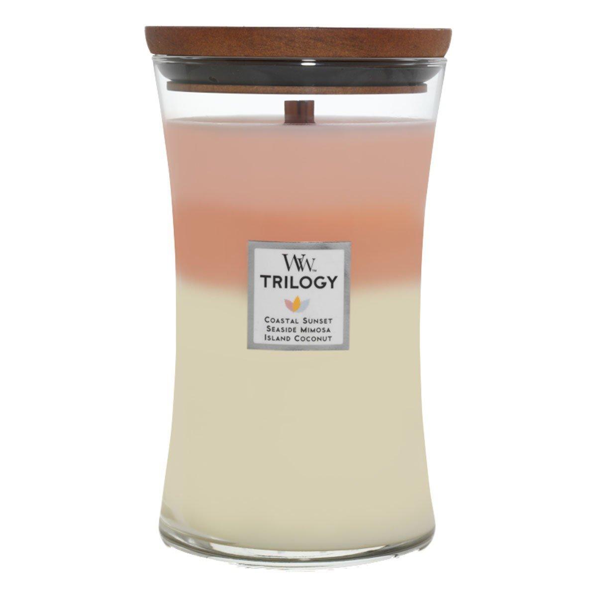 This WoodWick Hearthwick candle uses a wick made from organic wood which burns with the sound of a crackling fire, creating an atmosphere of total relaxation. It features a 'honeycomb' lattice wooden wick, which fills your room with fragrance five times faster than the average cotton wick. Made from a high quality blend of soy wax, this candle produces a slow, soot free burn of approximately 32 hours and won't leave a messy residue on the sides of the jar. The thick wooden lid is branded with the WoodWick logo and can be used as a base when the candle is in use to protect your surfaces.
