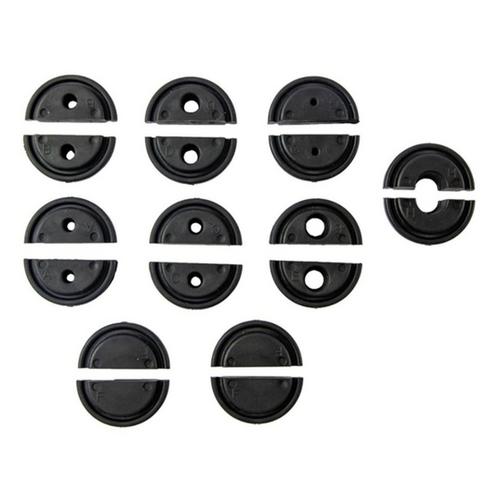 The YakAttack GridLoc Through Hull Wiring Kit is perfect for popular removable fish finder pods on kayaks as well as other applications where wires are needed to be ran through the hull of a kayak or boat. It is also compatible with the GridLoc Mounting Platform featured on the BlackPak Pro, which opens up the possibilities for many more applications like using your BlackPak Pro as a battery box for your motor, actions cameras, etc. The installation does not require access to the backside of the install area, but does require a 1" hole. Included are 14 rubber inserts with common hole sizes ranging from 0.08” to 0.389” in diameter, 4 blank inserts, 2 nylon grommets, and 2 sets of hardware. If your install requires more than 1” of clearance to run wires or connectors the GridLoc Through Hull Wiring Kit XL version (1.5” hole) of this product would be the best option. For a waterproof seal, marine sealant is required. This is an updated version of our original Through Hull Wiring Kit as compatibility with the GridLoc hole pattern was added to this new version. In addition we added 2 more blank inserts and 2 smaller 0.8" inserts for smaller wires.