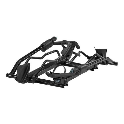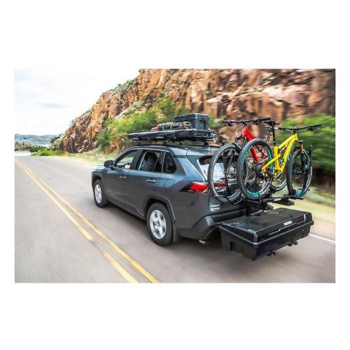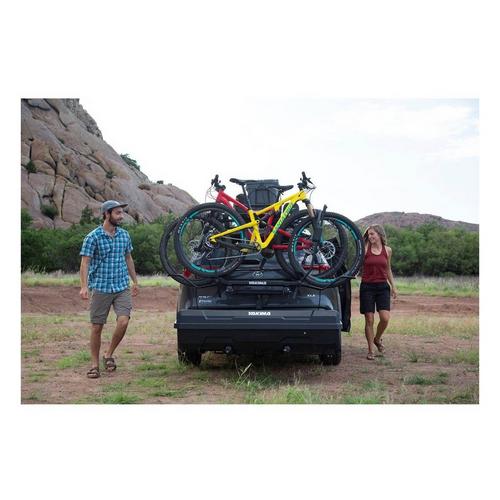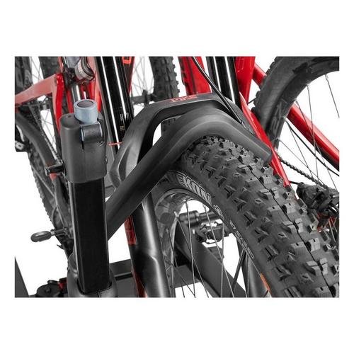 The Yakima EXO DoubleUp EXO System Bike Mount attaches to either the EXO SwingBase or EXO TopShelf to allow you to carry up to two additional bikes. The Yakima EXO DoubleUp easily attaches using a cleat system for a secure and stable connection. With the StrongArm hook, you'll be able to secure your bikes at the wheels to protect paint and carbon frame bikes. Featuring this design, the Yakima EXO DoubleUp can be used on a wide range of different bike styles including women's specific bikes, kids' bikes, fat-tire bikes, and more.