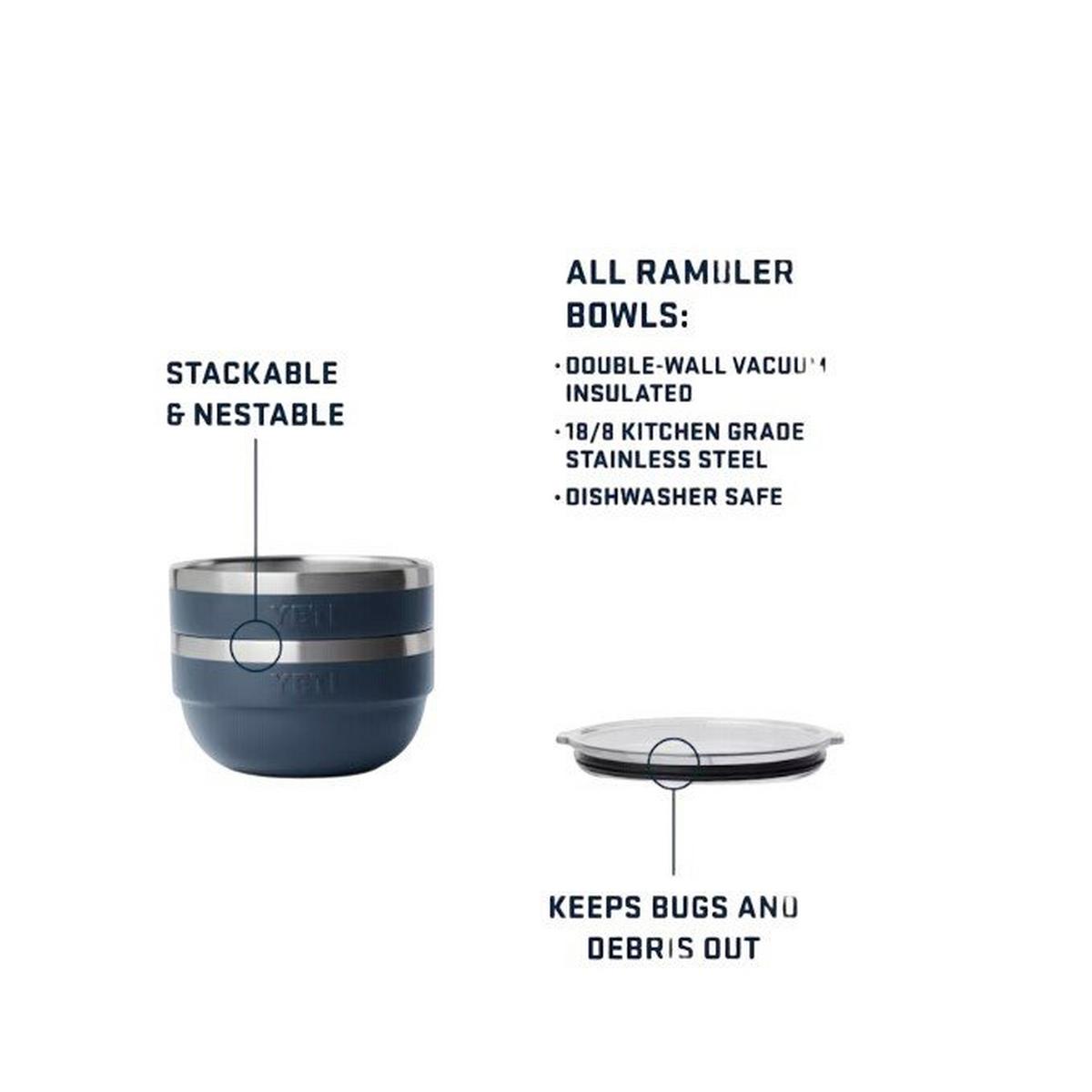 Three sizes of double-wall insulated bowls keep queso piping hot, and salads cool and crisp no matter where you feast. Designed to save space, Rambler™ Insulated Bowls and lids nest together for organized storage in cupboards and camp kitchens.