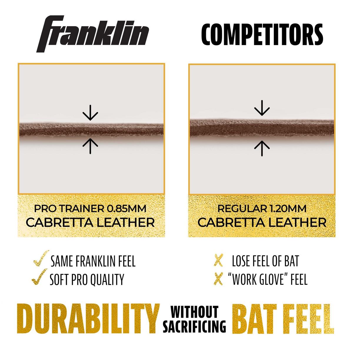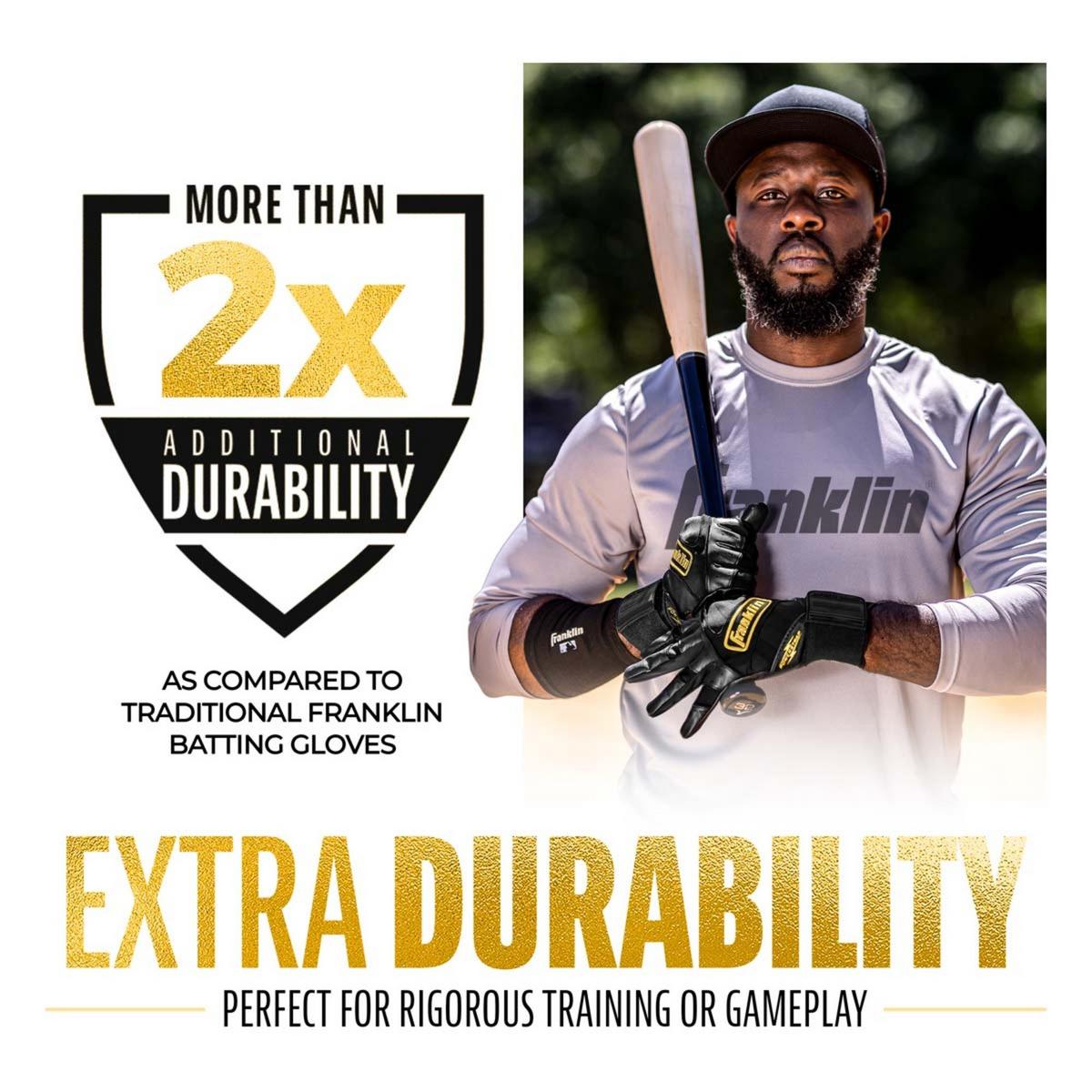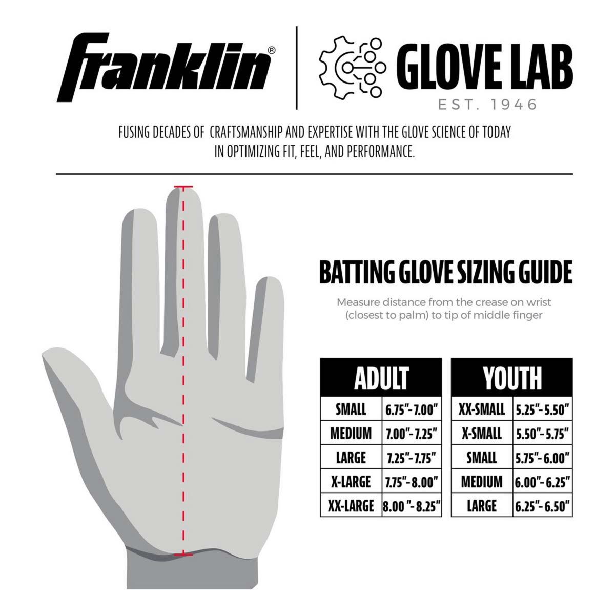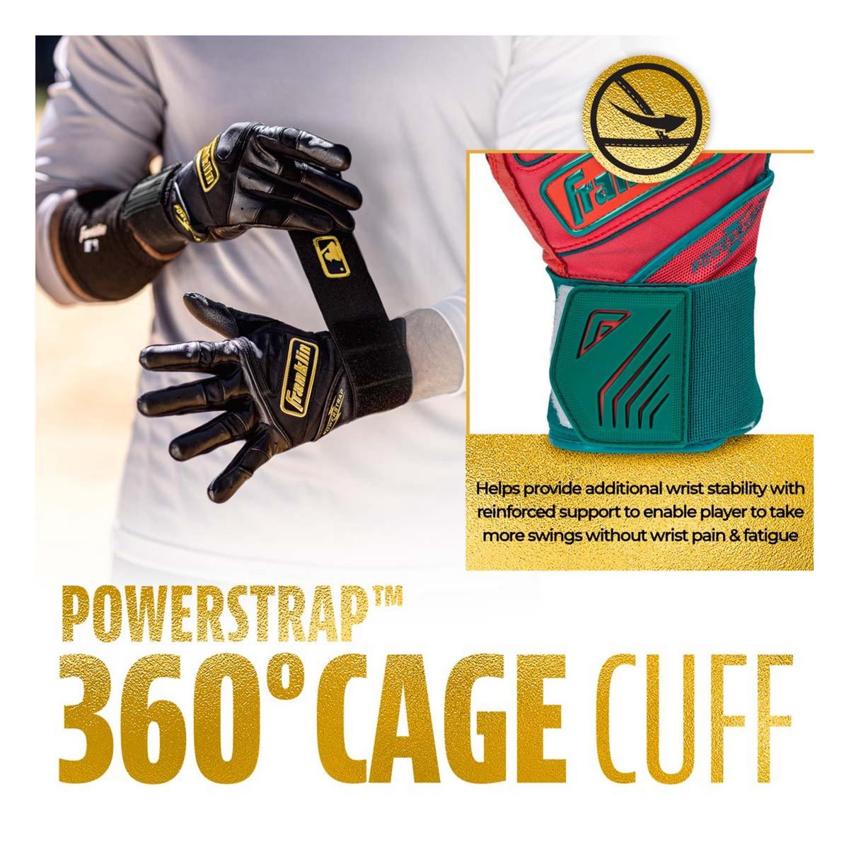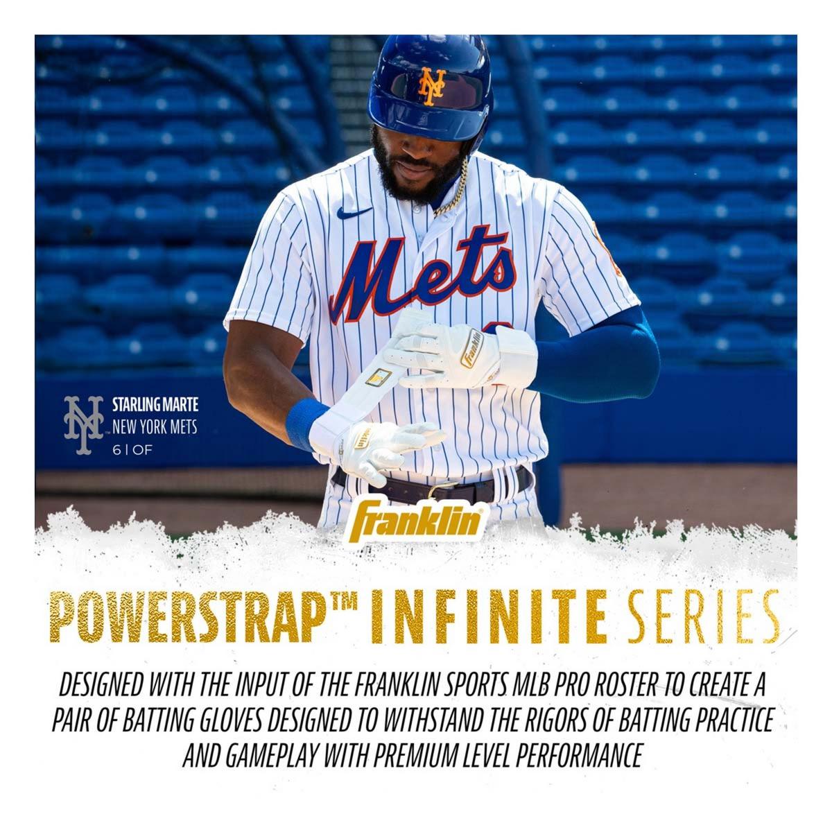 If you're looking for baseball and softball batting gloves designed for the optimal fusion of performance, durability and support, look no further than Franklin Sports' Powerstrap Infinite Series batting gloves. Crafted in tandem with our MLB pro players, the thicker leather maintains a superior softness without compromising the Franklin bat feel we all know and love. Designed for premium durability, the Powerstrap Infinite batting gloves are made to last swing after swing, and are perfect for use in the cages for batting practice or out on the field for games. Constructed with micro-perforations in the palm for added airflow to keep your hands cool and dry, and a seamless and patch-free palm design that provides a responsive feel on the bat with no bunching or seams in the way. Finished with our unique 50mm extra-tall wrist wrap and Powerstrap closure tab for reinforced wrist stability to provide the best support in the game. So if you're looking to practice your swing in the batting cages, or looking for additional grip and stability at the plate, grab yourself a pair of the new Powerstrap Infinite batting gloves from Franklin Sports today.