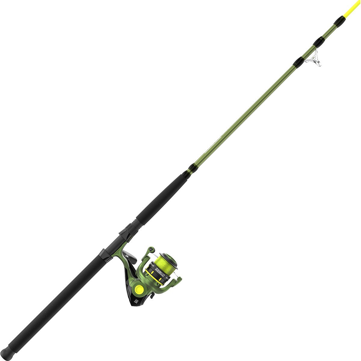 Specifically designed to haul catfish out of their hiding spots, Zebco’s Big Cat spinning combo is durable and ready for any tussle with a huge catch. A match for any catfish, this combo is built with all-metal gears, a smooth, multi-layered drag stack, and a ball bearing system in the reel, while the rod provides even more durability with a strong fiberglass rod and double-footed stainless-steel guides. A high-visibility rod tip and 25 lb hi-vis line increase awareness of movement under the water to help anglers snag a catfish with ease.