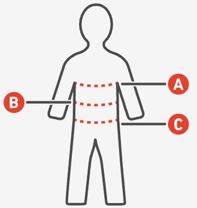 | Size | Height (in.) | Weight (lbs) | Chest (in.) | Natural Waist (in.) |