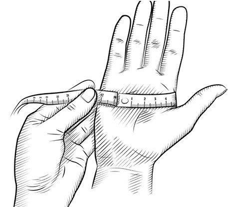 Measure the circumference of your hand with a tape measure. If you don't have a tape measure you can use a string which you then measure with a ruler.