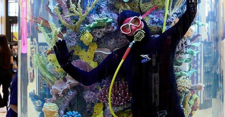 Adults and kids alike will enjoy spending quality time looking at all the different colorful fish within the 16,000-gallon aquarium. This saltwater aquarium is home to a wide variety of different fish and is cared for by a professional scuba diving team.