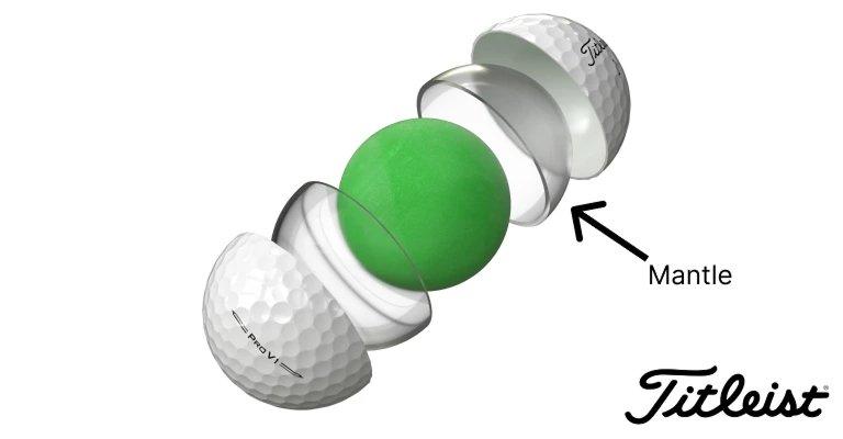Next comes the mantle. Present in 3-piece, 4-piece, and 5-piece golf balls, these layers help to manage the 'feel' of the ball - (soft or hard) and control on the green.