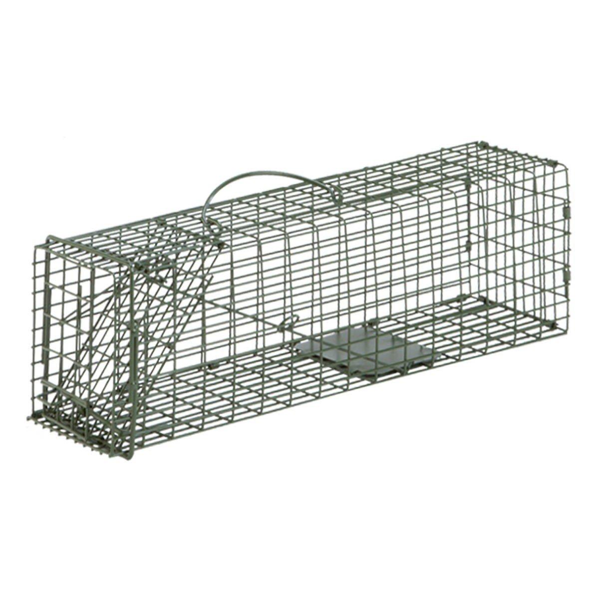 Duke Standard and Heavy Duty Cage Traps offer the ultimate variety in Humane Live Catch Cage Traps today. The Standard Cage Traps feature steel rod reinforced Spring Loaded Doors, pressure sensitive trip mechanisms and a durable, concealable green powder coated finish. For the animal control professional and trapper, Duke also offers top of the line Heavy Duty Cage Traps featuring all steel rod gravity drop doors, bait protected cage mesh, and a complete internal steel rod frame. All cage trap models are constructed to provide for exceptional durability with no harm to the animal.