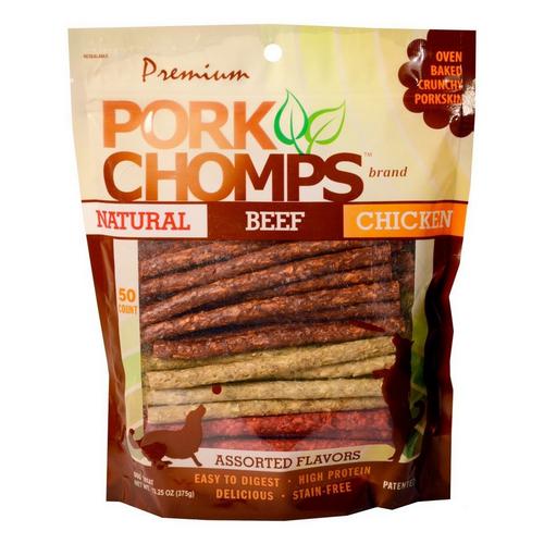 Pork Chomps Assorted Flavors Munchy Sticks Dog Treats 50 Pack