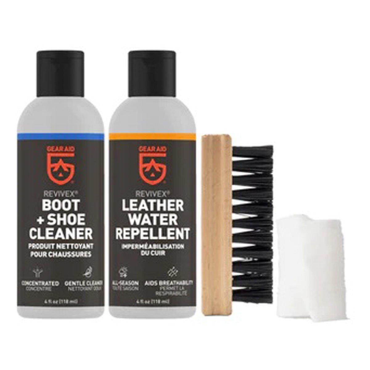 Dry feet are essential to a great outdoor experience. Before heading out for the lake, hills or campsite, use Revivex Leather Boot Care Kit. This boot care system will clean and waterproof all types of leather footwear. The kit is designed for full-grain leather care – making it easy to waterproof new boots and restore older shoes. The included gel water repellent soaks into leather, for a deeply penetrating, high-tech solution to rain, puddles and mud. It won’t affect breathability, so it’s also great for GORE-TEX footwear. No matter what the weather brings, with the Revivex Leather Boot Care Kit feet will stay dry and comfortable.
