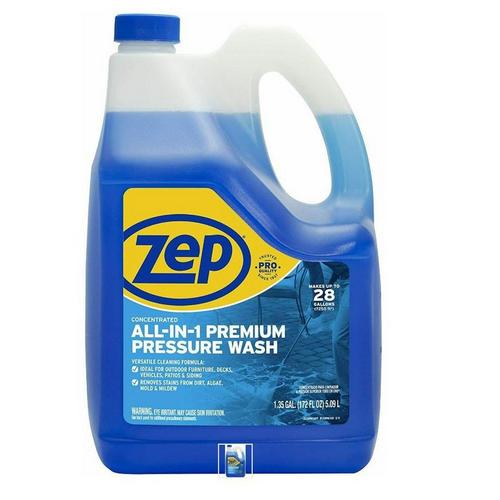 Zep Premium Pressure Wash is ideal for outdoor furniture, decks, vehicles, patios, and siding. This product removes stains from dirt, algae, mold, and mildew.