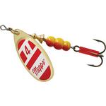 Mepps plain treble Aglias in size #0 (1/12 oz.) are perfect for panfish (bluegills or sunfish) and small stream trout. They are very light however and require a nimble rod equipped with a light action reel spooled with light line; nothing heavier than six-pound-test. Two-pound-test to four-pound-test is better. Aglias in size #1 and #2 (1/8 and 1/6 oz.) are perfect for larger stream trout and large bluegills sunfish and crappies. Size #3 (1/4 oz.) Aglias are also excellent for smallmouth bass and walleye. These sizes are ideal for teaching youngsters the basics of spinner fishing as they are heavy enough to cast well with light tackle yet they are small enough to catch a wide variety of fish.