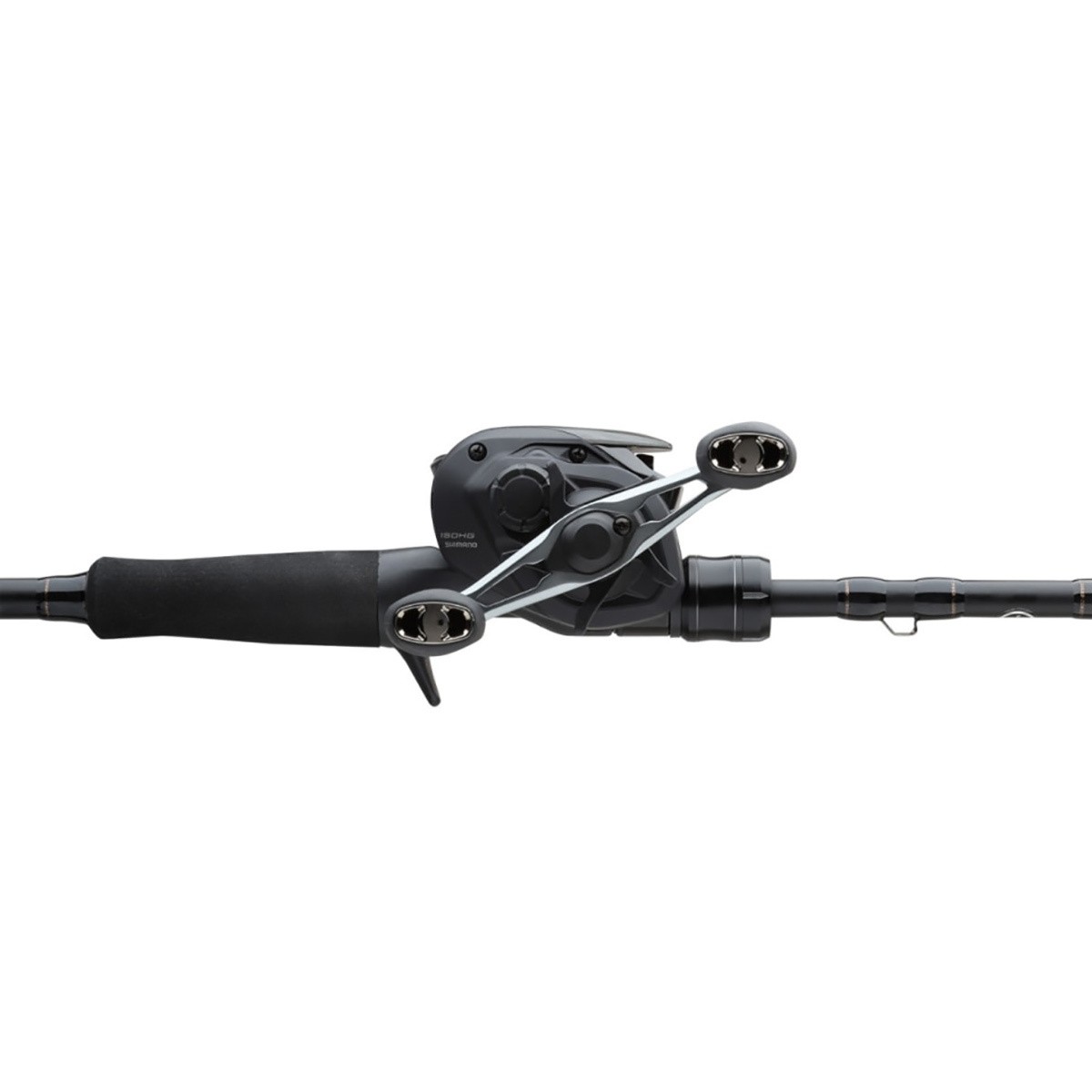 Built to provide bass anglers with broad-spectrum versatility, the Cauis C Combo offers the low-profile baitcasting experience anglers should expect from Shimano at an attainable price. Inside the lightweight and compact body of the updated Shimano Caius C reel are proven technologies like the Variable Brake System (VBS) to apply centrifugal force and weights instead of magnets to temper initial spool acceleration. VBS technology enhances the casting experience by enabling the spool to spin freely until the end of the cast, reducing the chance of a backlash. Shimano Super Free Spool technology within Caius C eliminates distance-robbing friction and improves overall casting performance. The Caius rod features modern aesthetics, fast action, and medium-heavy power to provide anglers with a versatile combo. A split-grip design and Titanium Oxide Guides prime anglers for on-water performance no matter the fishing technique they choose when chasing bass.