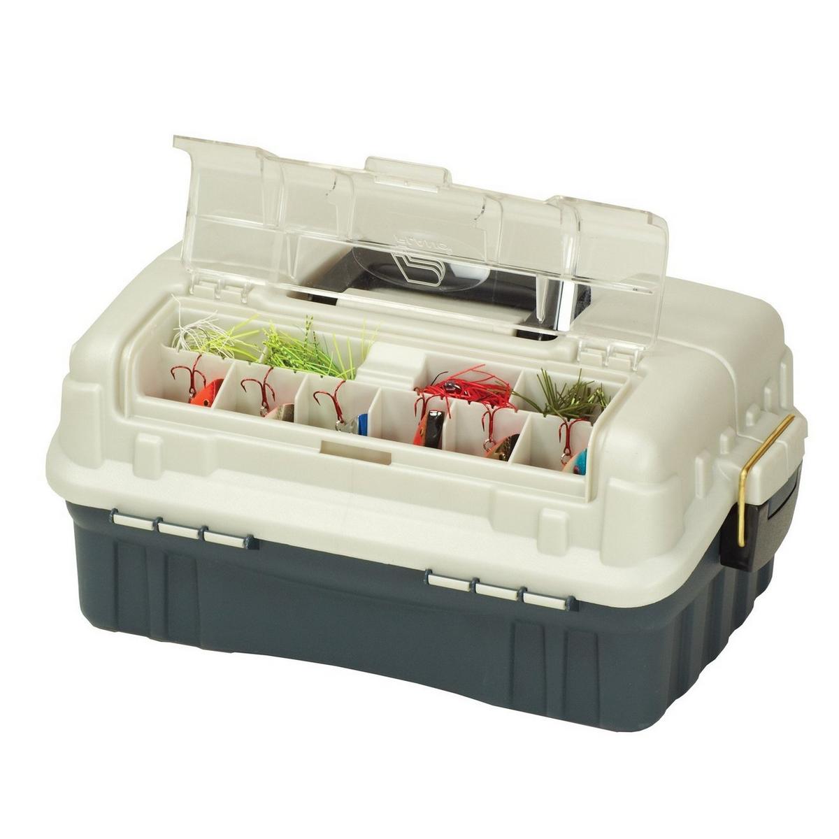 Get your fishing tackle in order with the Plano FlipSider 2-Tray Tackle Storage Box. Made from 100% wormproof, impact-resistant plastic, this FlipSider 2-Tray tackle box is designed with two extra-deep tackle trays with bulk storage below and an external top-bait access tray so you can access your favorite lures quickly.