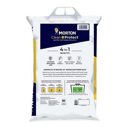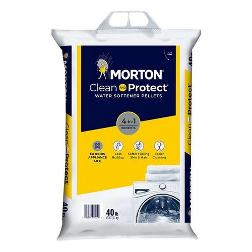 Morton Clean and Protect Water Softener Salt is formulated to prevent buildup in pipes and appliances, helping to extend their life and improve efficiency. For the many households that have hard water, it is a solution for softer water that provides many added benefits. When used, Morton Water Softener Salt Pellets help not only to decrease the buildup hard water can cause in pipes and appliances and make dishes easier to clean, but also leaves hair and skin feeling softer after washing and bathing. To continue to see the benefits of Morton Water Softener Salt Pellets, it is recommended that every other month you add between two and four new bags to your tank, depending on the number of people in your household.