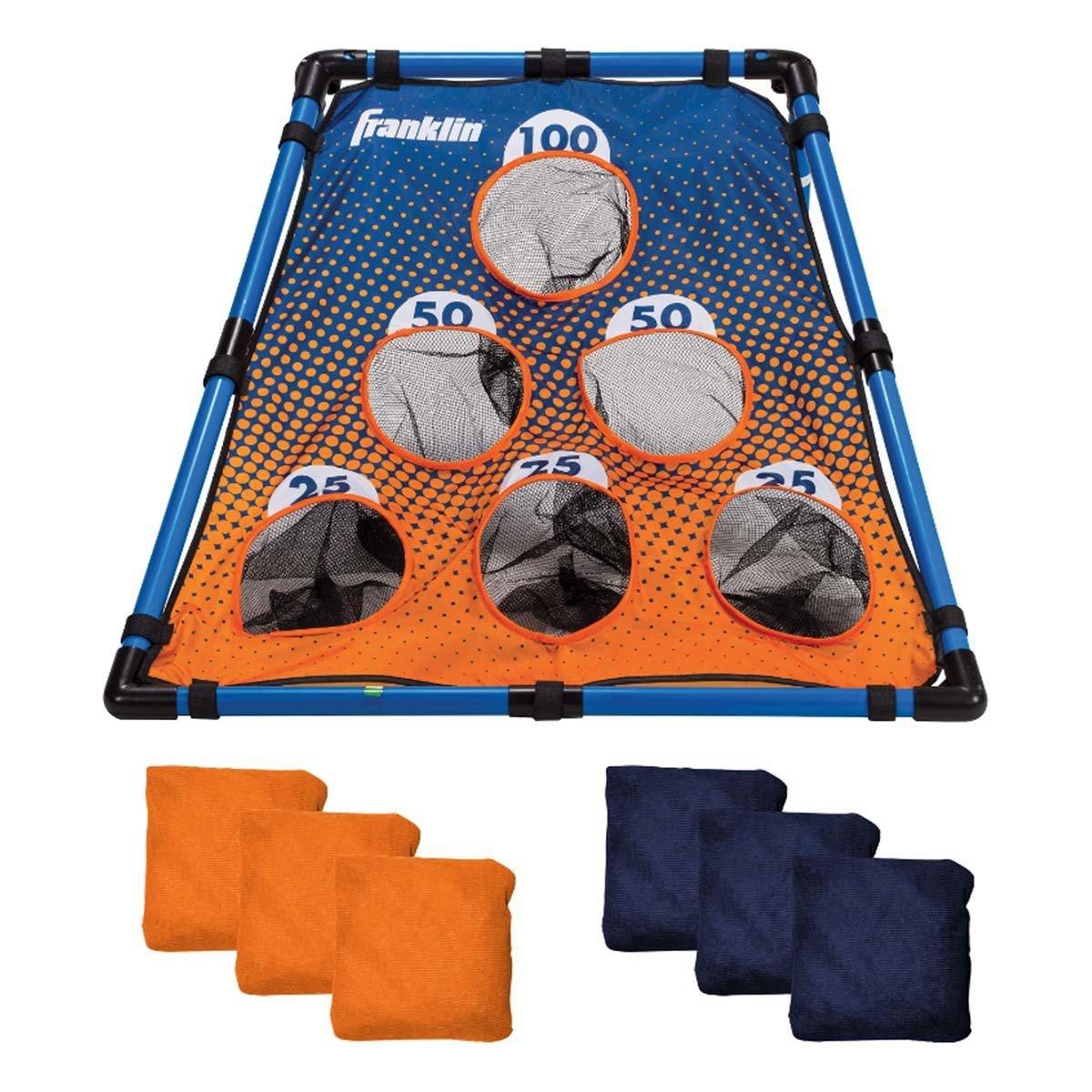 The Franklin 6 Hole Cornhole Game is the perfect game to entertain your family and friends at your next barbecue or outdoor party. With six holes, it offers twice the fun and competition of the traditional cornhole game. The sturdy and durable construction of this game will ensure it stands up to years of use, while the colorful graphics will add a pop of color to your outdoor space. The lightweight design and foldable legs make it easy to store and transport, and the included eight bean bags make it easy to start playing right away. Whether you're a seasoned cornhole pro or just starting out, the Franklin 6 Hole Cornhole Game is sure to provide hours of fun and entertainment for your friends and family.