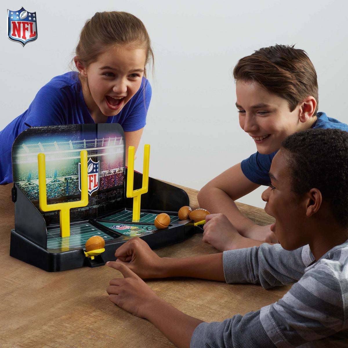 Franklin Sports' Flying Field Goal Mini Tabletop Football Game is perfect way to bring the football fun indoors! This field goal flinging football game set is perfect for kids and adults to play and have fun. Simply load your mini football launchers and fling the foam footballs through the goalposts to score. The player with the most points wins! Complete with infrared scoring sensors, this mini football game set keeps track of score so you don't have to. This game set comes complete with everything you need to play and fits on any tabletop. Help start some family football fun and grab your Flying Field Goal Mini Tabletop Football Game Set today!