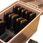 The essential storage for hi-capacity magazines. The Tactical Magazine Ammo Box holds 15 223/5.56 magazines. Works best with 20 and 30 round magazines. Padlock tabs for security. O-Ring sealed water resistant design. You can stack them loaded up to the ceiling if you need to. Comfortable handle for when you're bugging out.