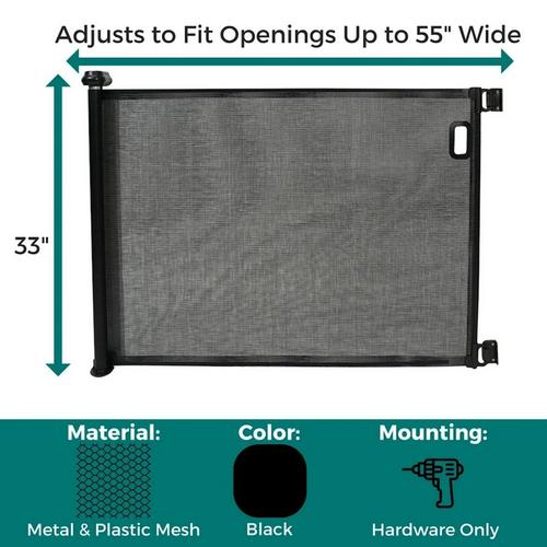 Keep your pet safely contained while preserving a clean, open feel in your home with the VersaFit Retractable Pet Gate from North States MyPet. Designed with a no-threshold, fully retracting mesh panel, this gate opens wide without creating a trip hazard and provides a secure barrier wherever you need it. Standing 33 inches tall and adjusting up to 55 inches wide, it’s ideal for blocking off stairways, hallways, doorways, and other wide indoor openings—helping you manage your pet’s access with ease.