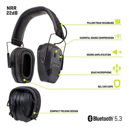 The ULTRX™ Bionic Fuse Bluetooth® Electronic Earmuff redefines your audio experience, bringing together top-notch sound, comfort, and safety all into one. Experience audio in a whole new light with dynamic wave compression system, coupled with a 6x omni-hearing boost, ensuring high quality sound clarity. Stay connected with Bluetooth® compatibility along with its symmetrical microphone response, ensuring crystal-clear communication. Crafted with an air-gel cooling technology to help you remain cool and comfortable during extended use. Not the mention, the plush pillow foam padding of the muff adds an additional layer of comfort. Immerse yourself in rich, synchronized audio with multi-sync harmonics while the USB-C lithium battery keeps you powered throughout your day. Whether you’re spending a day at the shooting range or working on a construction site - you're protected! The earmuffs rate a high Noise Reduction Rating (NRR) of 22dB. The ULTRX™ Bionic Fuse Bluetooth® Electronic Earmuff is where premium sound, supreme comfort, and ultimate safety converge all unite!