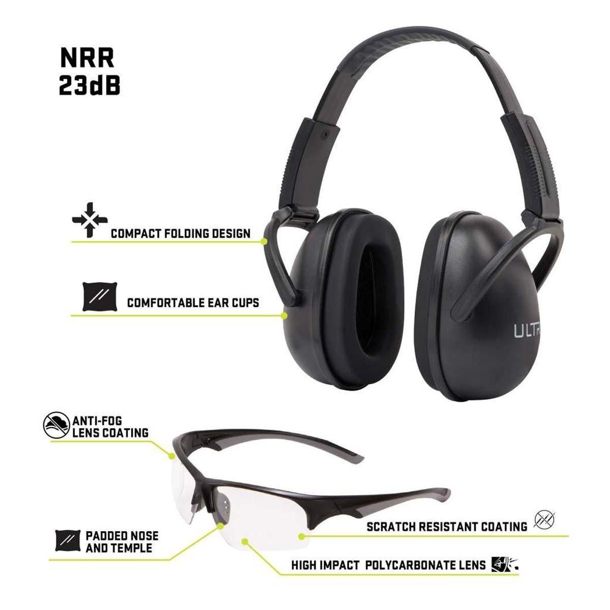 The ULTRX™ Blocker Ear & Eye Protection Combo offers the ultimate fusion of comfort and safety. Enjoy ultra-comfortable hearing protection alongside glasses that fit your head perfectly. The safety glasses are crafted with a high-impact polycarbonate, providing superior durability and protection for your eyes. The lens is equipped with an anti-fog coating, ensuring clear vision even in challenging conditions. Elevate your safety gear to a new level with the ULTRX™ Blocker Ear & Eye Protection Combo!