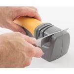 Smith's, the leader in innovative sharpening technology, is proud to offer an electric knife sharpener that incorporates both manual and mechanical sharpening elements. This unique combination provides a broad capability to easily sharpen dull blades and maintain razor sharp edges. The sharpening wheels on your Edge Pro Compact Electric Knife Sharpener are made from bonded synthetics. The synthetics used are selected for their ability to guarantee longer wheel life, uniform cutting, and minimum heat build up, so that de-tempering of your blade does not occur. Our wheels are manufactured according to strict tolerances in order to ensure the same high quality on each and every wheel that we make. The crossed ceramic rods put the final finished edge on your blade. Crossed ceramic rods create a fixed sharpening angle that lightly hones both sides of your blade at the same time; thus, putting a polished, razor-sharp cutting edge on your knife. Also, the crossed ceramic rods are excellent for giving already sharp knives a a quick touch-up before use. Just a few, quick pulls through the sharpening slot is all it takes. Smith's recommends always using the ceramic rods for final edge honing after you sharpen using the synthetic wheels. Again, just a few pulls through the sharpening slot is all it takes.