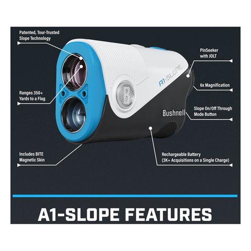 Precision and Slope Gone Ultra-Compact – the A1-Slope is the smallest Bushnell Golf laser rangefinder ever and features our patented, Tour-trusted Slope Technology.