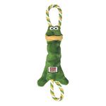 The KONG Tugger Knots Frog is a tough, interactive tug and shake toys that dogs love. Each toy has knotted ropes inside for a realistic feel, which extend outside the toy creating tug handles at both ends. This unique design creates a captivating variety of textures and resistance that dogs love - and it contains a squeaker for added fun.