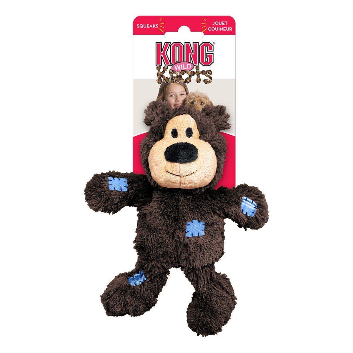 KONG Wild Knots are soft and cuddly on the outside while durable and strong on the inside. Wild Knots bears are sure to be a hit with dogs and their pet parents. Dogs love the knotted skeleton, and the reinforced plush body provides extra durability. KONG Wild Knots have less stuffing for less mess and they squeak to entice play.