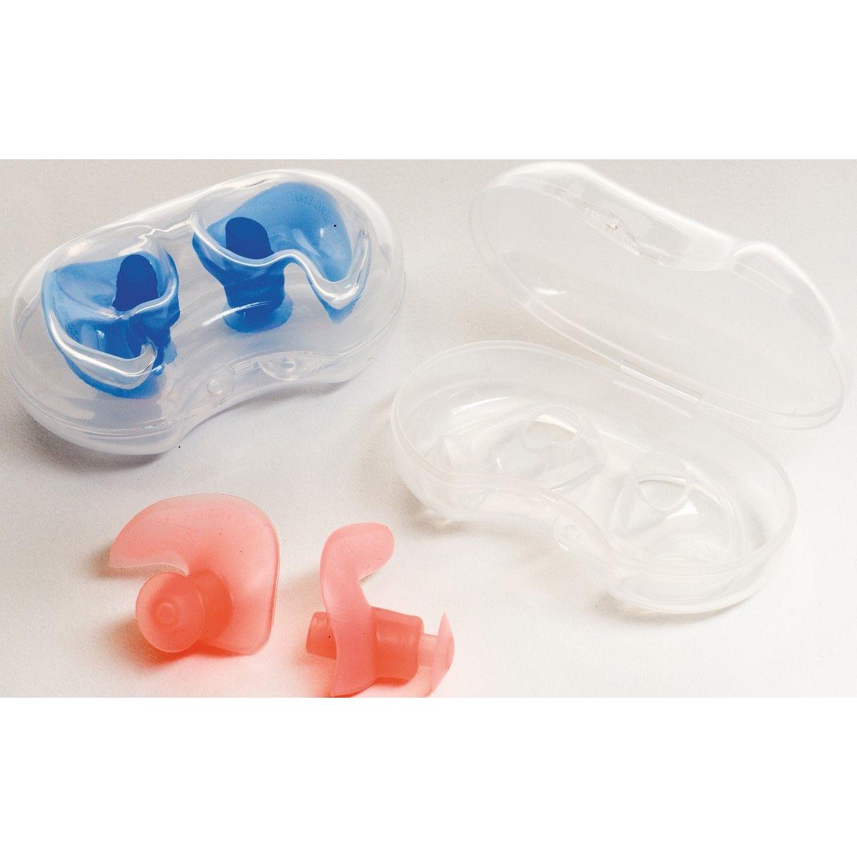 The Silicone Molded Ear Plugs feature a hollow stem to ensure minimal hearing disruption while swimming. Engineered to block water from entering the ears the LEARS Silicone Swimming Ear Plugs are specially shaped to fit left and right ears and include a carrying case for easy travel and storage. One size fits all.