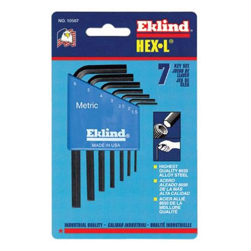 EKLIND TOOL COMPANY is America's leading manufacturer of high quality, industrial grade hex keys, made with pride in the U.S.A. since 1950. The EKLIND 10609 Hex-L Key allen wrench - 9pc set Metric MM sizes 1.5-10 Long series meets the most stringent requirements of professional mechanics, tradespeople, do-it-yourselfers and hobbyists.