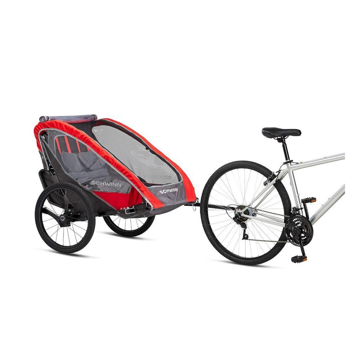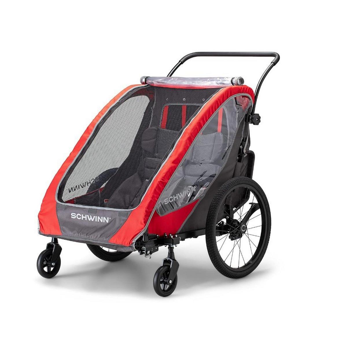 The Schwinn Summit Deluxe Trailer Stroller is the perfect solution for active families, offering the flexibility to bike or stroll. This versatile 2-in-1 design easily converts from a bike trailer to a convenient stroller, allowing you to bring your child along on any adventure. The smooth ride is ensured by the suspension system that absorbs bumps, while the adjustable handlebar provides comfort for parents of different heights. Your child will enjoy the comfortable seating with a secure harness, and weather protection to keep them shielded from the elements. With ample storage space for essentials and a convenient folding mechanism, the Schwinn Summit Deluxe Trailer Stroller is designed for both convenience and adventure.