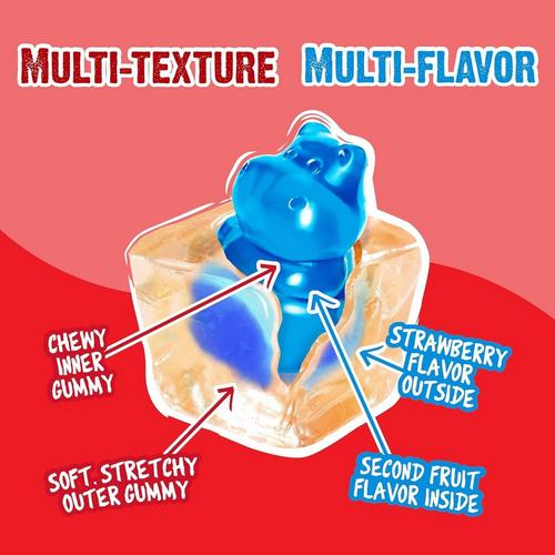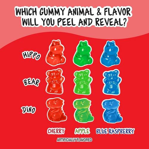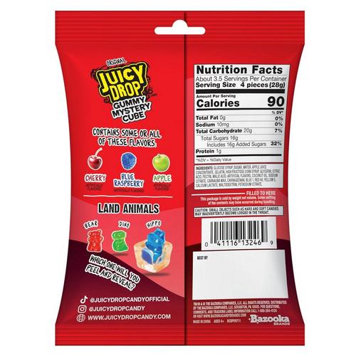 Uncover a delightful surprise in every Juicy Drop Gummy Mystery Cube! Peel back the cube to discover cute gummy animals shaped like bears, dinosaurs, and hippos, bursting with bold fruity flavors such as blue raspberry, cherry, and apple. Each chew brings a new twist of taste that you won't be able to resist.