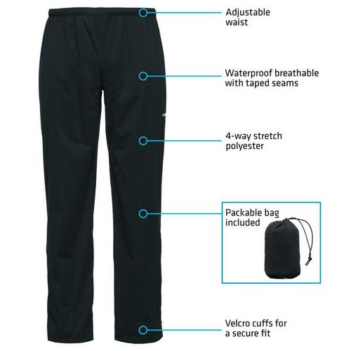 Savvy anglers know a light drizzle is the perfect time to be on the water. The fishing is usually hot, but you won’t be in your waterproof breathable Whitewater Packable Rain Pants. Made of a breathable 100% polyester stretch fabric with DWR, the pants offer a comfortable fit with an adjustable shock cord elastic waistband. The incredibly flexible fit allows you to quickly kneel to put a lip-lock on a trophy largemouth, while double-taped seams enhance the ability to ward off the elements. The Whitewater Packable Rain Pants' lightweight fabric combined with the Velcro-adjustable cuffs makes it easy to quickly get them on and off. The pants and the companion jacket all fit in a packable pouch that will fit in a pocket.