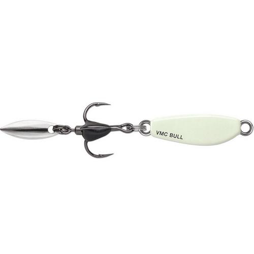 The original, proven Bull Spoon just got blinged out with a bladed hybrid treble hook for maximum flash and vibration! Erratic, wounded baitfish action, quick sinking, minnow shaped profile and life-like 3D holographic eye. A wide variety of patterns. Ultra Glow colors last up to 15 minutes.
