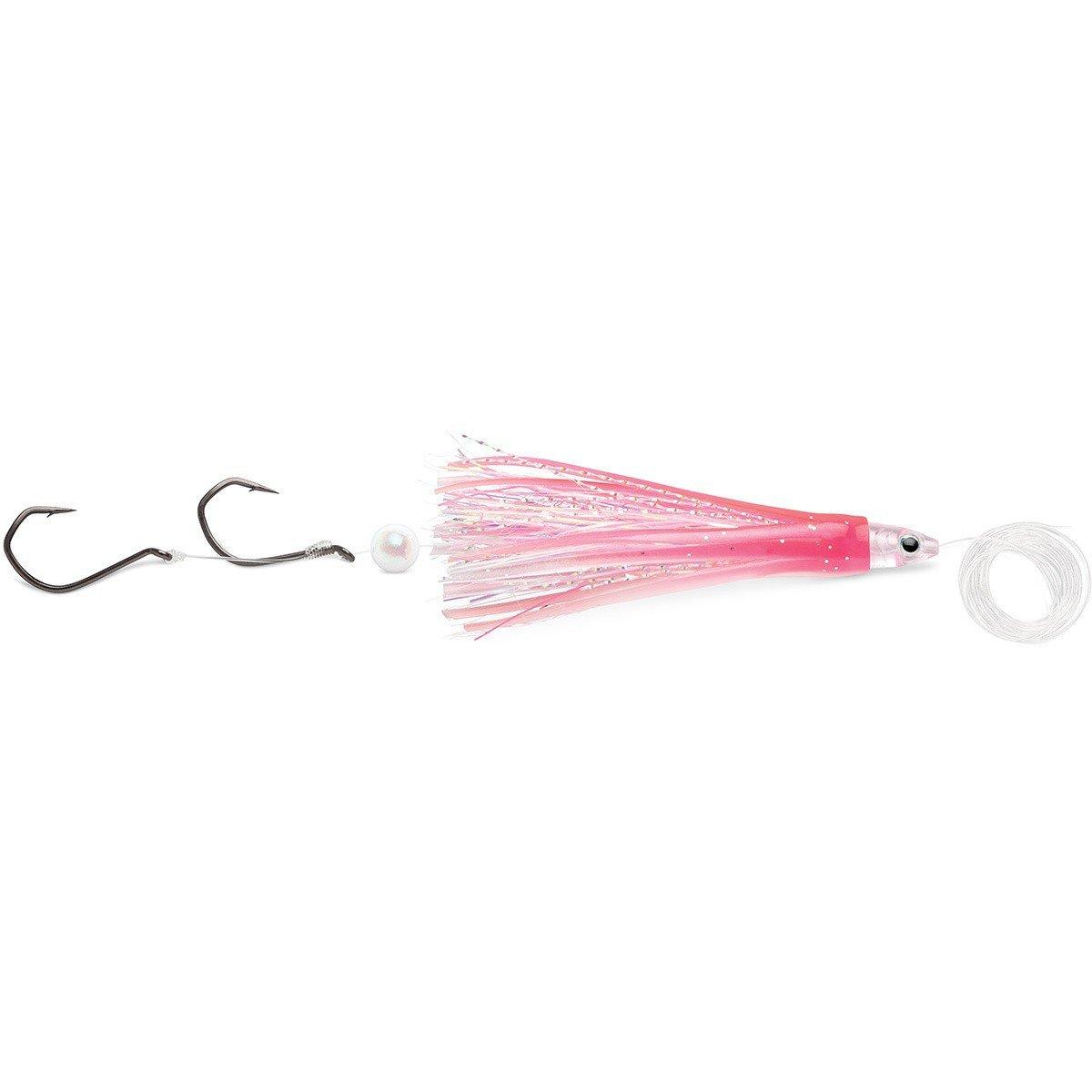 The Luhr-Jensen Flash Fly Rig is a highly versatile, ultra-realistic trolling rig designed to attract fish with its flashy appearance and realistic movement. This rig features a combination of multi-layered Everglo skirting and flash tinsel for maximum fish-catching potential. It's ready to use with its 36" of 50lb. Sufix mono & VMC TechSet® hooks.