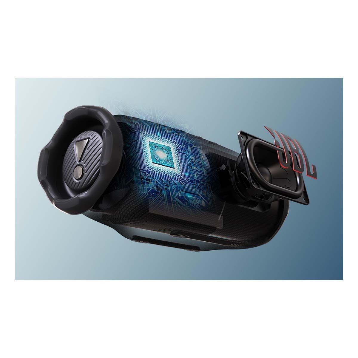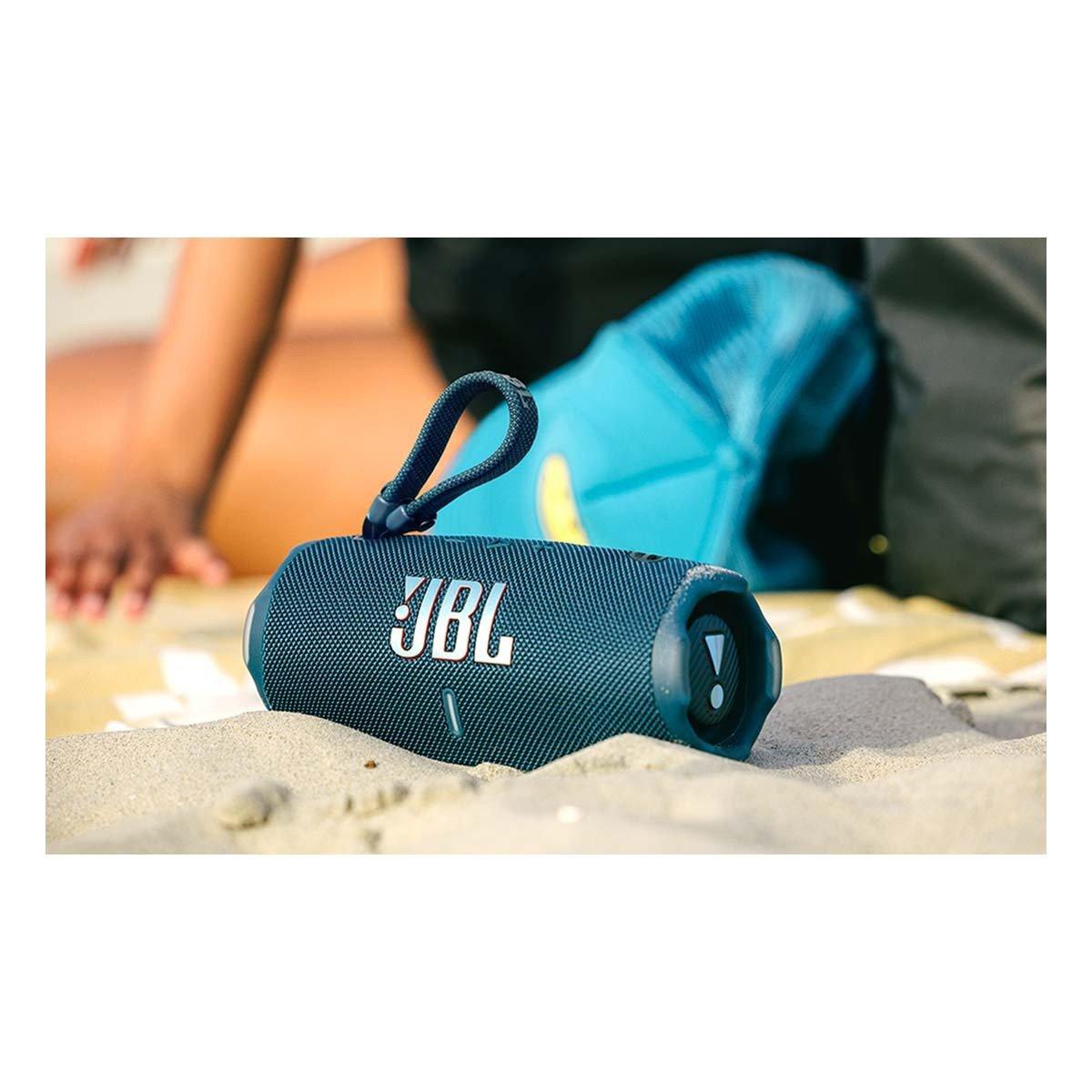 Like that newest season of our favorite show, the JBL Charge is back and better than ever. The Charge 6 is everything we've come to love with new twists, higher stakes, and a bigger punch. With sound that slaps like never before, better connectivity, sturdier build, and up to 28 hourse of playtime, the Charge 6 is a portable audio beast. How do we pack more sound in the same iconic portable speaker package? With some redesigned hardware and our brand new JBL AI Sound Boost - a clever audio processing algorithm we've included under the hood. The end result? The Charge 6 hits way above it's weight class, filling our space with full, rich, immersive sound - without taking more space on our table. The Charge 6 is also one of the toughest portable speakers out there. It's waterproof, dustproof and drop-proof so it takes a beating without missing a beat. And, true to its name, the Charge 6 still includes a built-in powerbank to charge your mobile device while you continue to jam out to your tunes. What could be better than a new JBL Charge 6 in our lives? How about two? or four? Now we can effortlessly connect with other Auracast™-enabled JBL speakers to cover more ground (and more ears) with the same playlist, whether we're throwing the most sensational rooftop soiree or getting the crowd hyped before the ultimate pickle ball tourney. This is THE JBL Charge 6. Portable audio like we've never heard it before.
