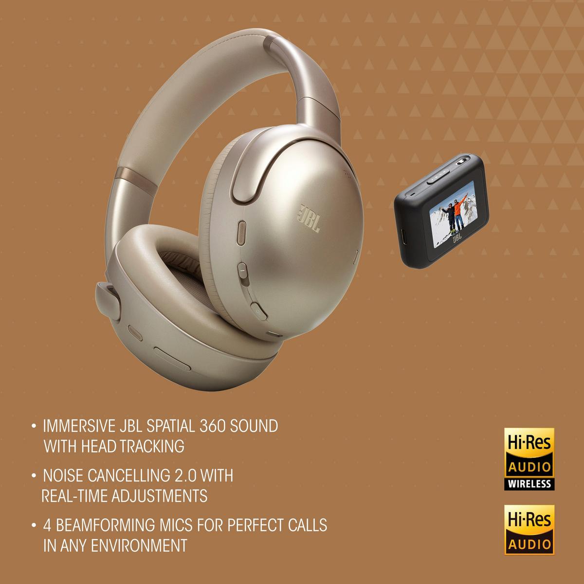 Get ready for the JBL Tour One M3 Smart Tx, our best-sounding and most feature-rich over-ear headphones ever. Lose yourself in lossless audio from the built-in DAC. Or go wireless with stunning Hi-Res Audio via Bluetooth®. JBL Spatial 360 sound with integrated head tracking makes movies and mobile games even more immersive. True Adaptive Noise Cancelling 2.0 tunes out distracting ambient noise in real-time, so you can concentrate on your work—or your favorite playlist. Use the JBL Smart Tx universal Bluetooth® Audio Transmitter to elevate your wireless sound experience and connect to in-flight and other public spaces entertainment systems and seamlessly stream from Bluetooth® devices. Customize and control your sound through the JBL Headphones app, accessible from the JBL Smart Tx display and share audio via the advanced Auracast™ connection with other Auracast™-enabled devices.