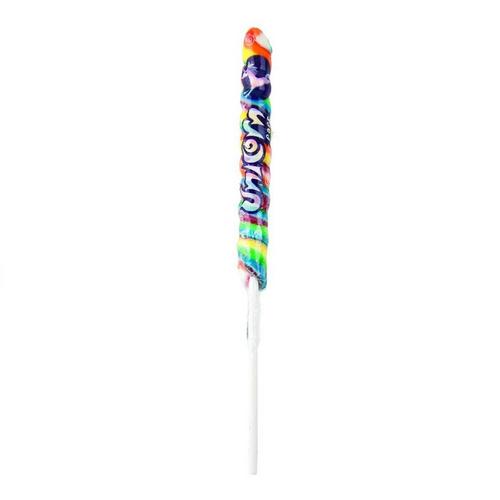 This Unicorn Pop Rainbow Swirl Lollipop is the perfect treat for any occasion! Watch your children's eyes light up as they bite into this delicious and magical lollipop! Every swirl of the rainbow colored lollipop is sure to bring a smile to their face. The Unicorn Pop Rainbow Swirl Lollipop is made with all natural ingredients and features a unique flavor combination that will make your taste buds tingle. It's the perfect way to add a bit of fun and flavor to any special occasion. Enjoy a delicious taste of happiness with the Unicorn Pop Rainbow Swirl Lollipop! These 18″ fruity pops are appealing to children of all ages!