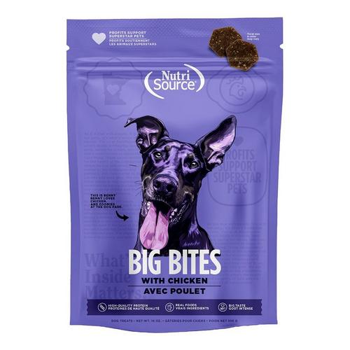 - NutriSource Chicken Big Bites are made with high-quality protein.
