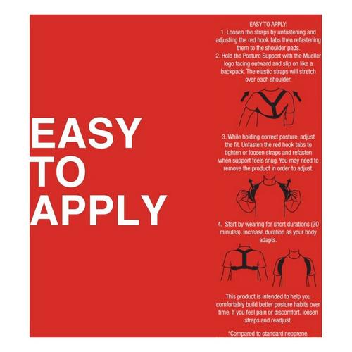 The Mueller Adjustable Posture Support helps to improve your overall health by improving your posture. Made from lightweight and breathable materials, this upper back support has a discrete and slim design that works under clothing or on top of clothing.