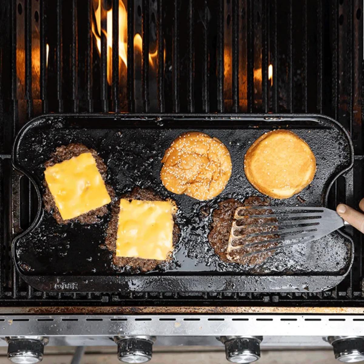 This short-order cook is known for its great heat retention, incredible durability, and ability to grill skewers or griddle burgers. The naturally seasoned cooking surface is ready to go, straight from the foundry. Fire up the grill for smash burgers!