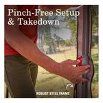 Bring on the bug-free outdoor adventures with the Back Home™ screen canopy tents. Lounging with the family in the backyard or hanging with friends in the park? The Back Home 10.5 x 9 Screen Tent sets up easy using a one-push center hub with OnePeak™ technology. Plus, we made sure the screen tent fits over a picnic table so you can eat inside the enclosed mesh walls without the pests.