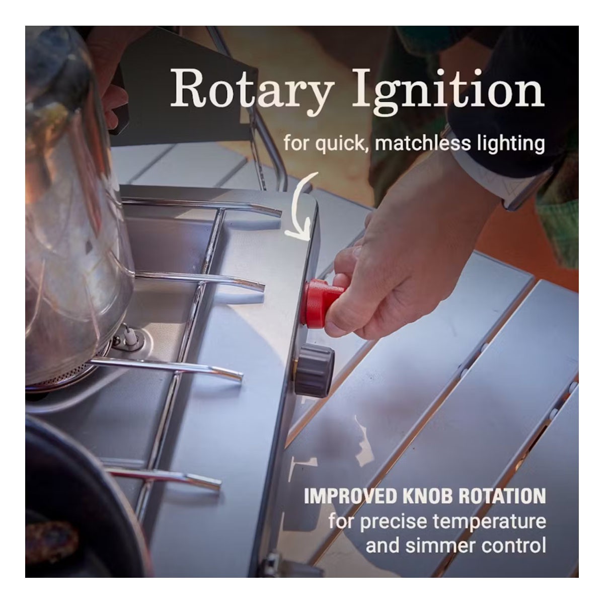 Level up your food game with the Cascade™ Collection. Perfect for those times when trail mix just won't cut it, the Cascade Classic Camping Stove makes it easy to cook great meals outdoors. Its compact design makes it easy to bring along on your adventures, and its chrome-plated grate and aluminized steel cooktop are quick and easy to clean.