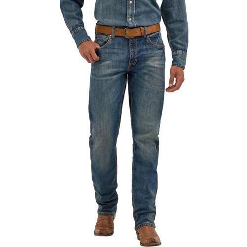 Wrangler Retro slim fit jeans nod to our history while introducing fits and washes suited for the modern cowboy. Designed with a closer fit and leg opening that still falls comfortably over boots, our men's Wrangler straight leg slim fit jeans add extra style to the classic look you love. These jeans sit low on the waist and make it easy to show off your favorite belt buckle. That design detail is our Western heritage showing through, something that happens often with the Wrangler® Retro® collection.