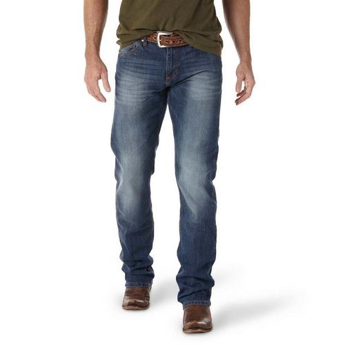 Wrangler Retro slim fit jeans nod to our history while introducing fits and washes suited for the modern cowboy. Designed with a closer fit and leg opening that still falls comfortably over boots, our men's Wrangler straight leg slim fit jeans add extra style to the classic look you love. These jeans sit low on the waist and make it easy to show off your favorite belt buckle. That design detail is our Western heritage showing through, something that happens often with the Wrangler® Retro® collection.